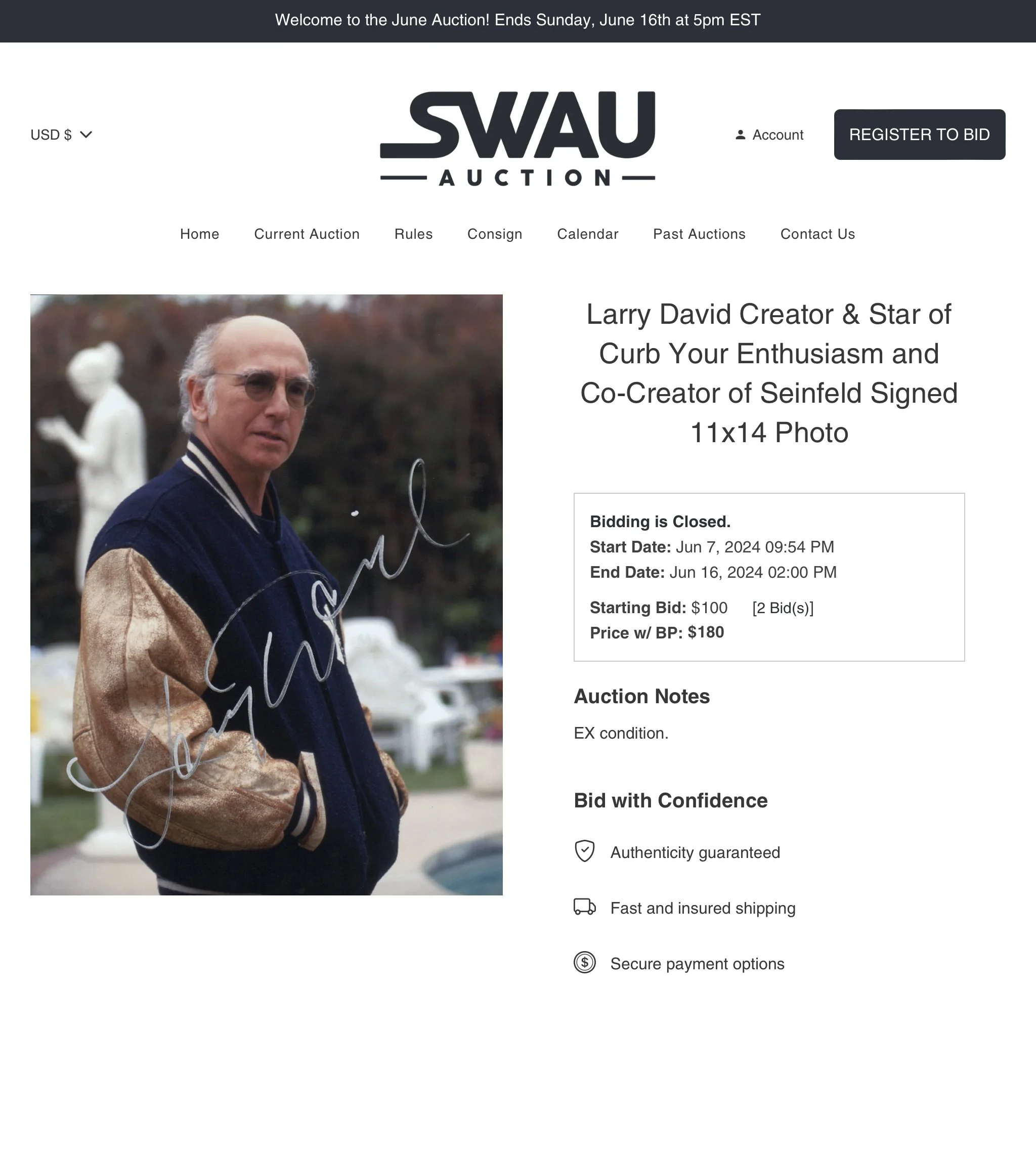 Larry David signed 'Curb Your Enthusiasm' 11x14 photo July 22, 2024 Sold @ SWAU ← Christopher Nolan signed 'Batman Begins' 11x14 photoDenzel Washington signed 'Malcolm X' 11x14 photo →
